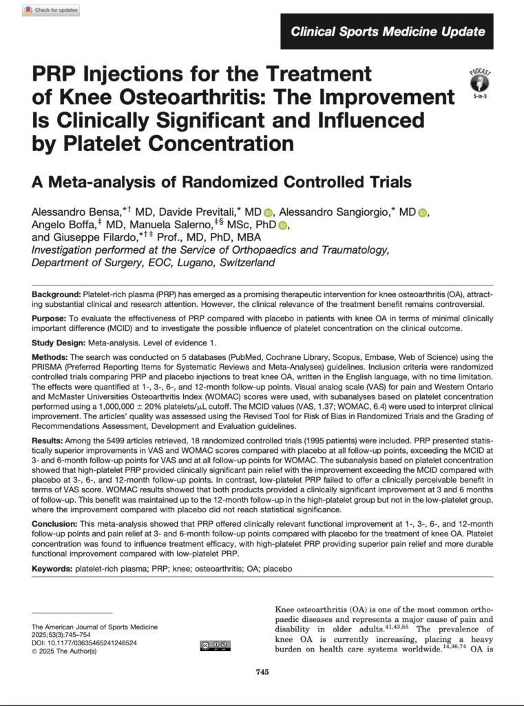 PRP: CUANDO LA CONCENTRACIÓN PLAQUETARIA SÍ IMPORTA Cada vez más evidencia sugiere que, en ciertos tejidos y condiciones musculoesqueléticas, las formulaciones con mayor concentración plaquetaria pueden generar un entorno biológico más activo. SBL.PRP.3 está diseñado para permitir obtener PRP de alta concentración (>4×), manteniendo un producto limpio y estable. 📌 La evidencia reciente es claraUn […]